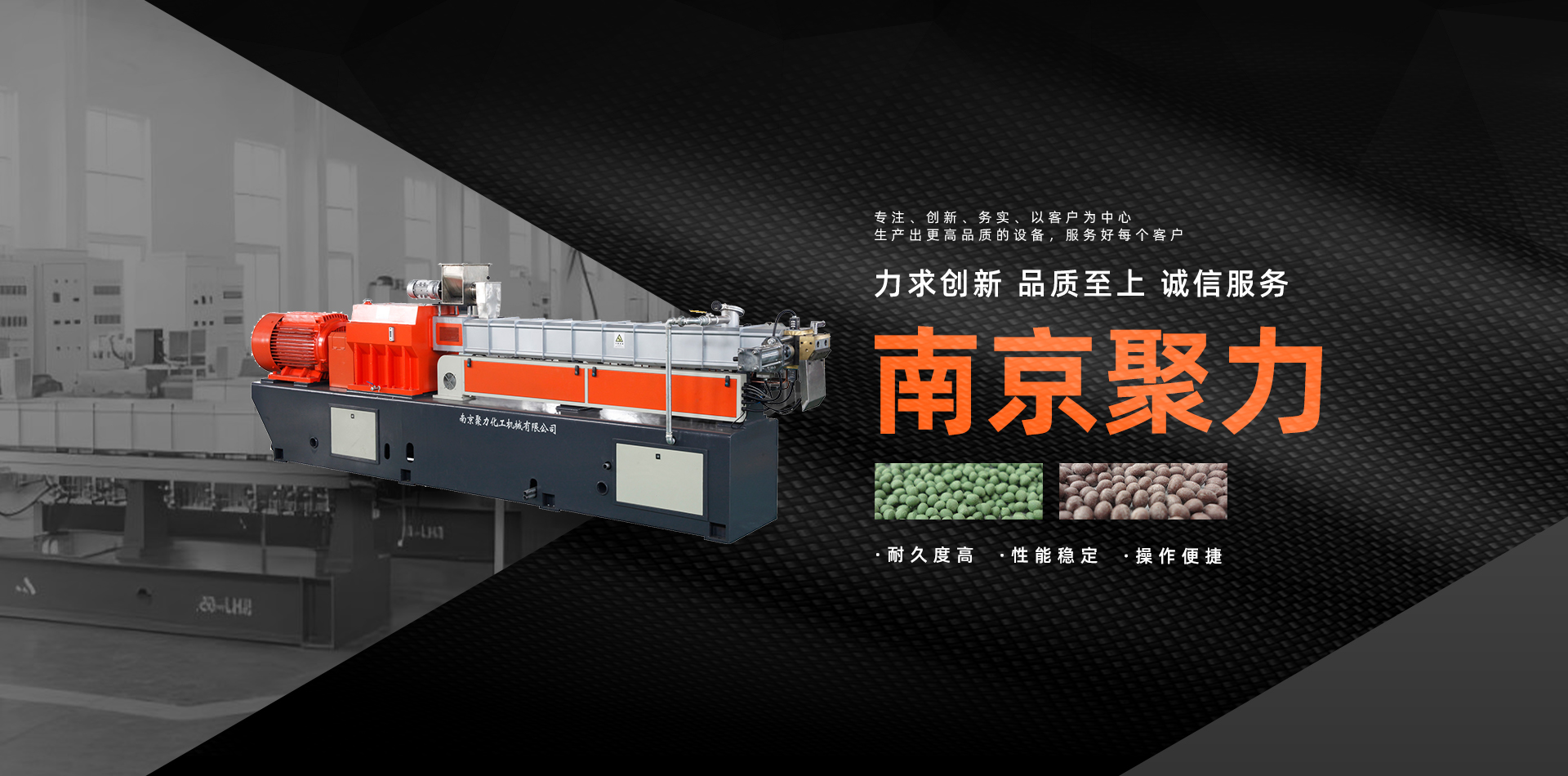 南京聚力化工机械有限公司是一家专业从事以同向塑料改性造粒机、南京双螺杆挤出机、水下切粒机、片材挤出生产线、全降解造粒生产线,为核心的塑料高聚物配混改性设备以及相关工艺与工程领域的技术开发,及配套辅机的科研开发和生产制造企业。拥有多名在双螺杆领域多年从事研究和生产的高级工程师、资深专家和经验丰富的现场调试工程师。注册资金1600万元。现有现代化标准厂房四栋,占地20000多平方米,获国家新型实用专利8项,发明专利2项。拥有加工中心、数控镗床、车床、螺纹磨床及各种加工设备80多台。公司质检部购置了硬度计、三坐标测量仪、金属探伤仪等仪器,对产品质量进行有效地控制。月加工筒体能力500多节,年生产机组400多台套。设备广泛运用于:配混工艺生产专用料、母料、工程改性料、汽车材料、电线电缆、大型塑料管材、板材、石化、化纤建筑、医学、农业及国防等领域。产品出口东盟、中东、印度、北美、东欧、北非各国和地区。